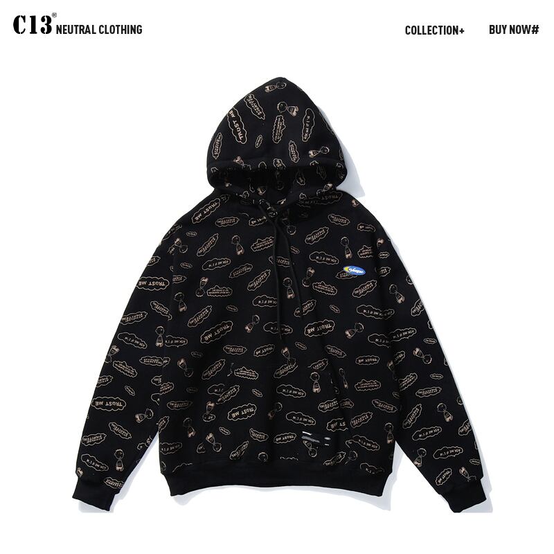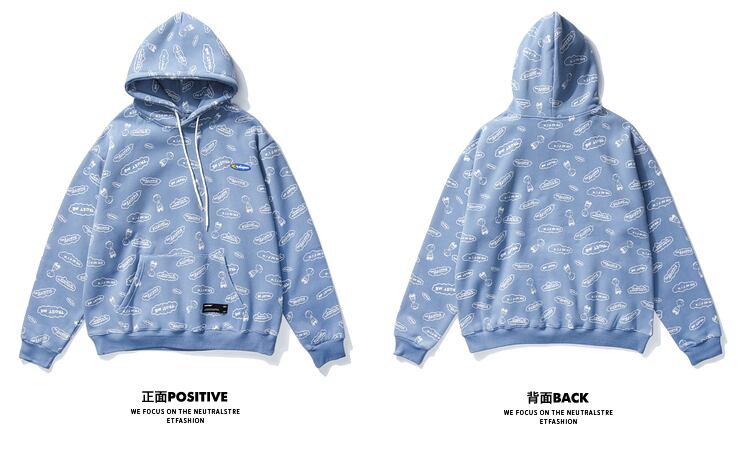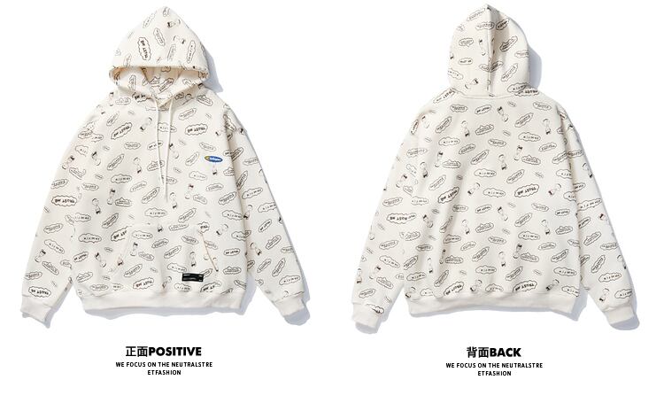 病みカッコイイ メンズファッション ストリートファッション ヒップホップ 個性的 裏原 スタンダードプリント柄フードセーター レディースオータムウィンタールーズカジュアルベルベット レトロ ストリート 秋物 冬物 ✝ メンズファッション57675606751