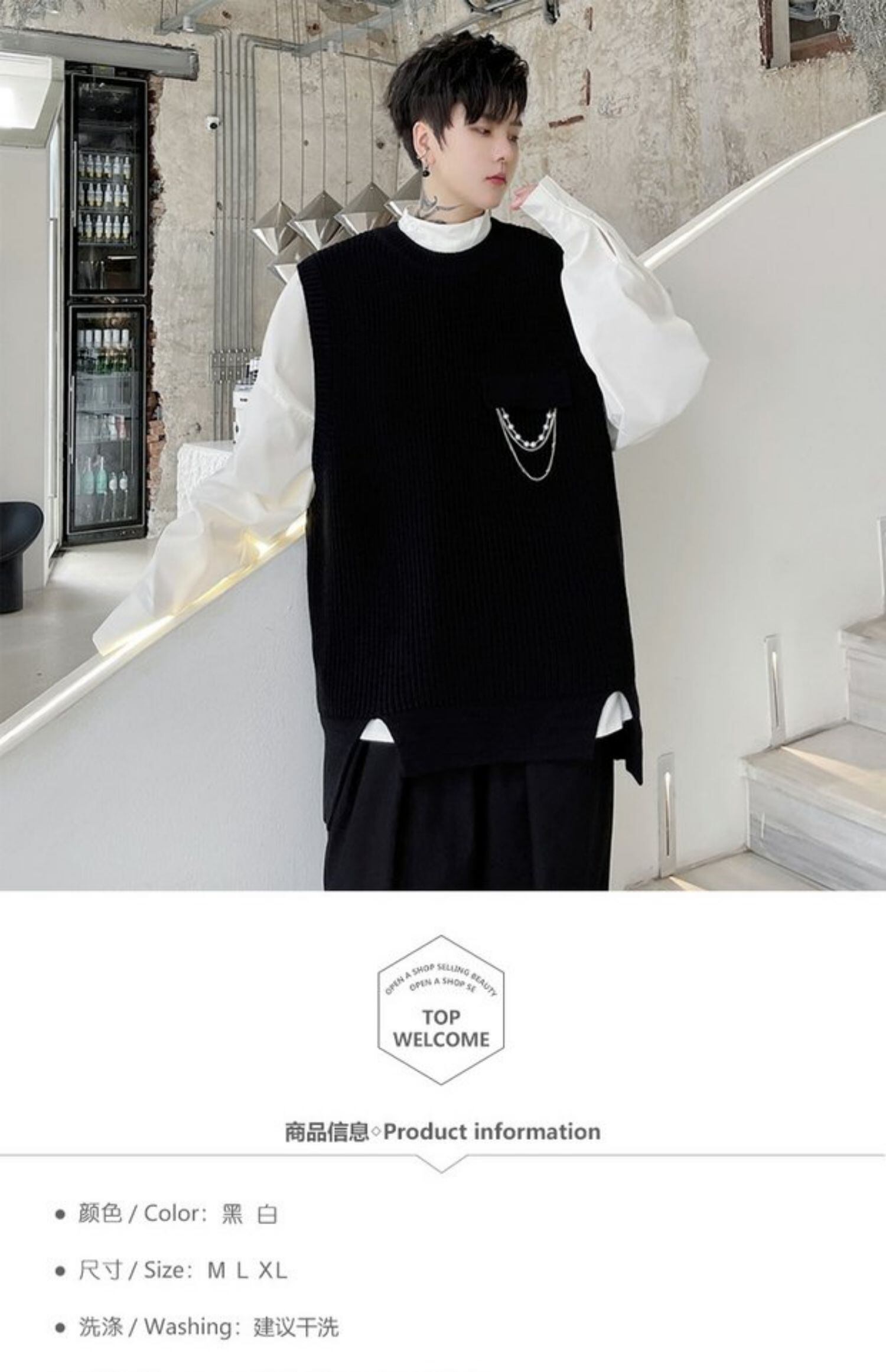 病みカッコイイ メンズファッション ストリートファッション ヒップホップ 個性的 裏原 オータムラウンドネックニットスプリングメタルチェーン ソリッド カラー 春物 秋物 Oネック ソリッドカラー ✝ おしゃれ メンズ 53270163691