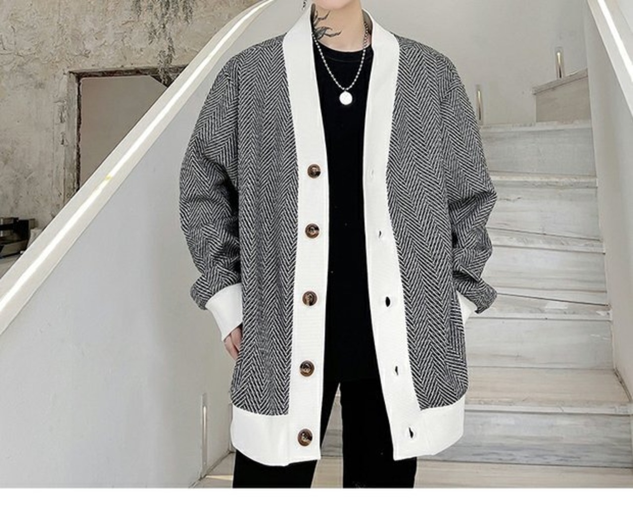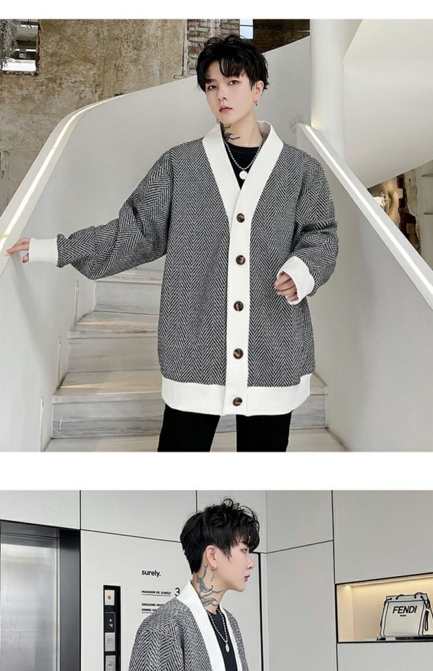 病みカッコイイ メンズファッション ストリートファッション ヒップホップ 個性的 裏原 カーディガンセーター ルーズパターンカラージャケット ✝ おしゃれ メンズ 15764422919