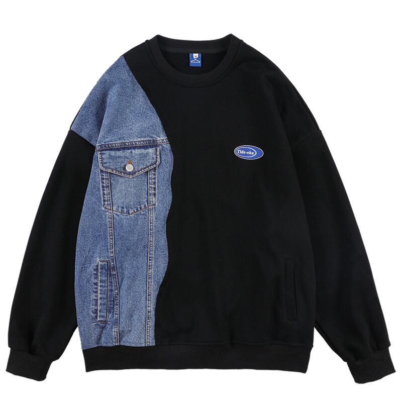 病みカッコイイ メンズファッション ストリートファッション ヒップホップ 個性的 裏原 スタンダードラウンドネックセーター レディースルーズトップス レトロ ストリート Oネック ステッチ ✝ メンズファッション67554745687