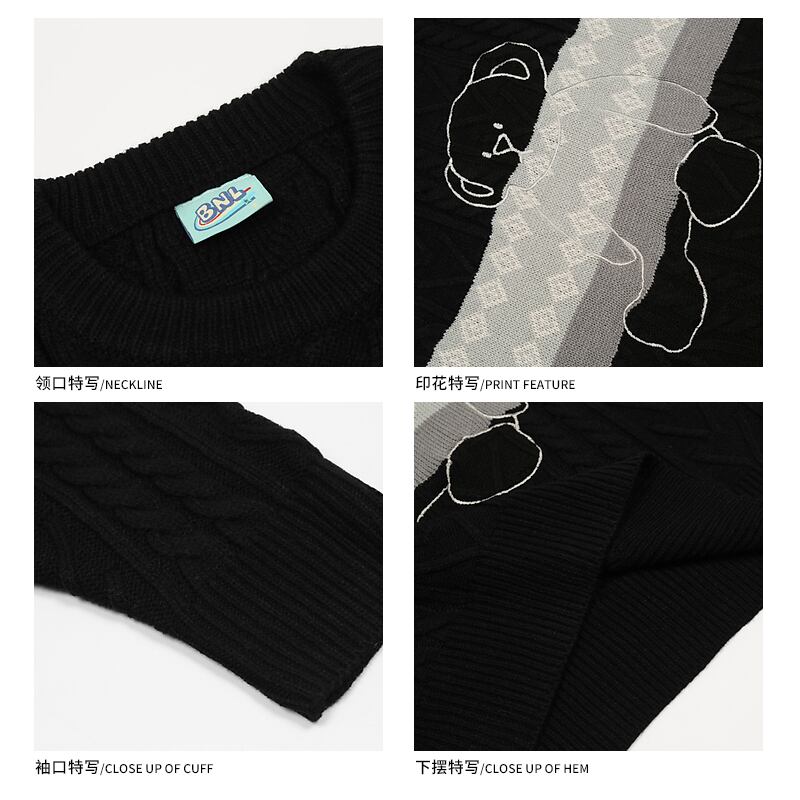 病みカッコイイ メンズファッション ストリートファッション ヒップホップ 個性的 裏原 スタンダード刺繍カラーラウンドネックセーター オータムルーズニットトップス レトロ 秋物 Oネック ✝ メンズファッション95072048737