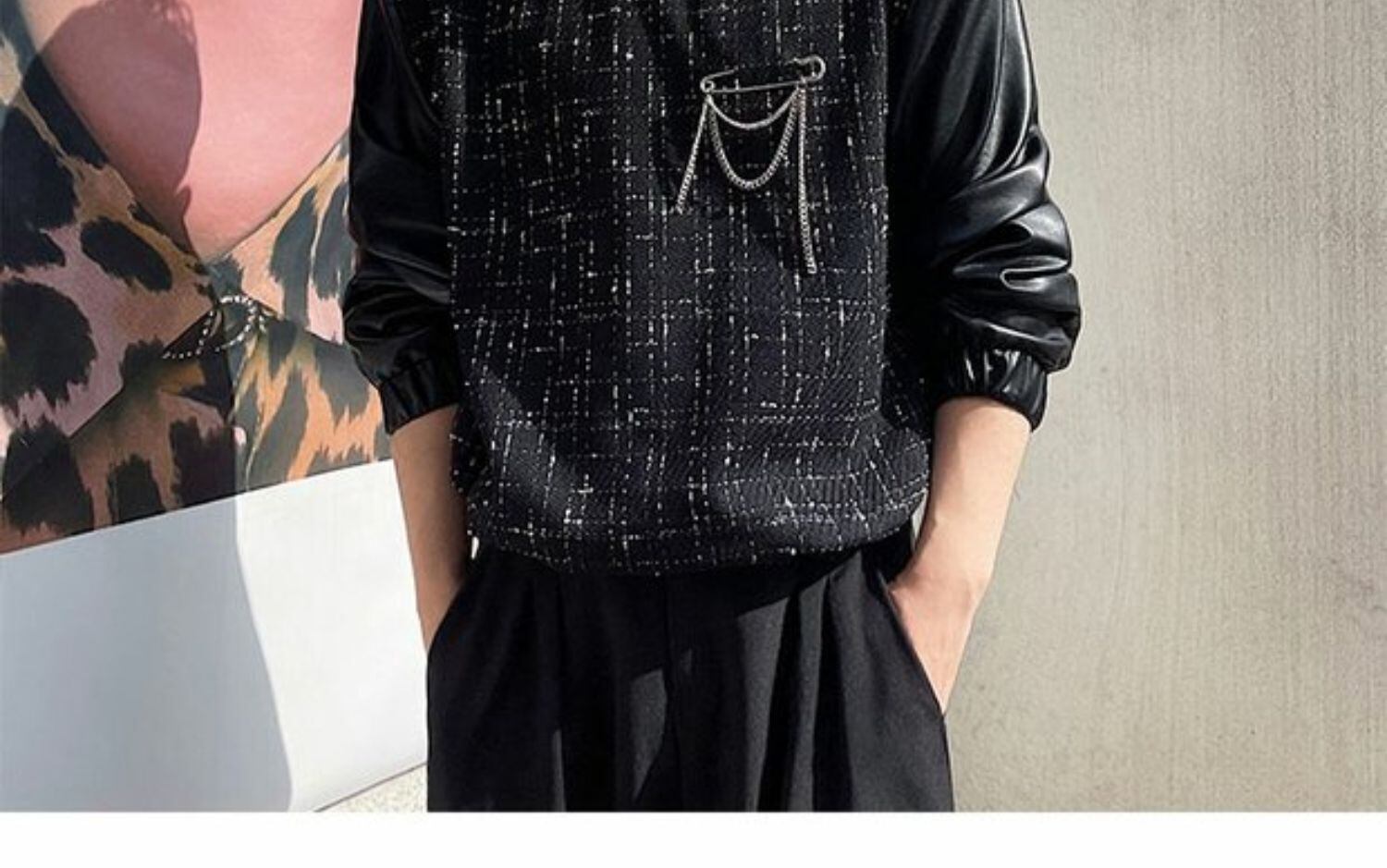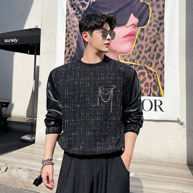 病みカッコイイ メンズファッション ストリートファッション ヒップホップ 個性的 裏原 スプリングオータムスタンダードレザーラウンドネックセーター トップス レトロ 春物 秋物 Oネック ✝ おしゃれ メンズ 43199838616