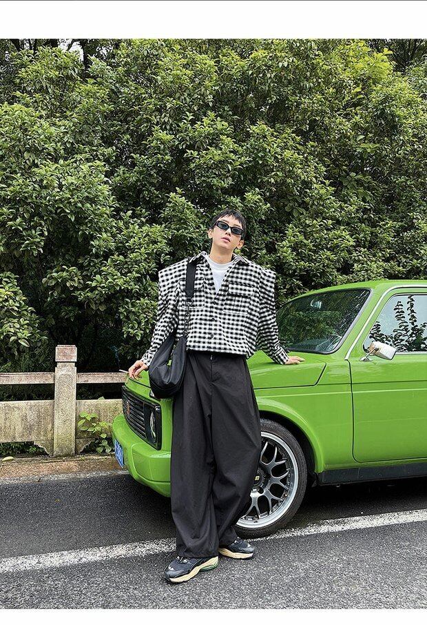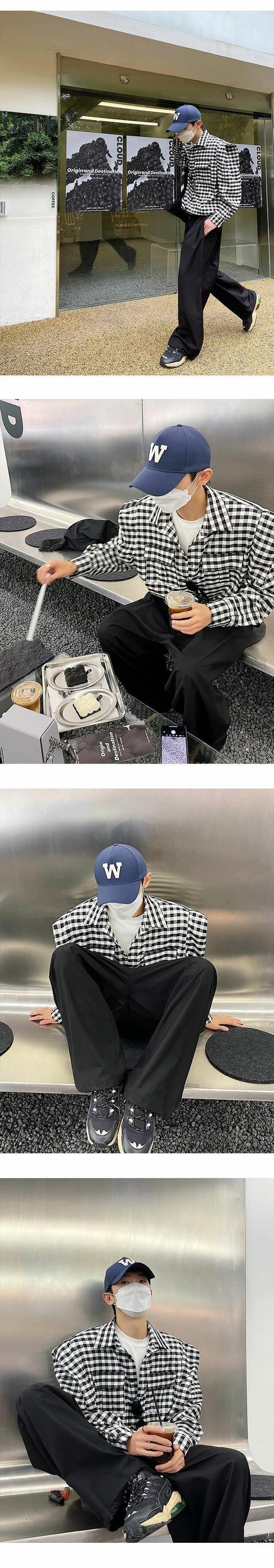 病みカッコイイ メンズファッション ストリートファッション ヒップホップ 個性的 裏原 オータム格子柄シャツ ジャケット レッドトップス ロング ストリート 秋物 ワイドショルダー ✝ おしゃれ メンズ 21413938419