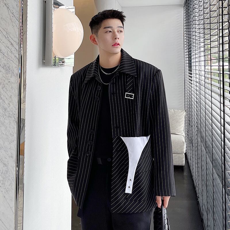 病みカッコイイ メンズファッション ストリートファッション ヒップホップ 個性的 裏原 オータムジャケット ストライプシャツ ストリート 秋物 ステッチ ✝ おしゃれ メンズ 79220422902