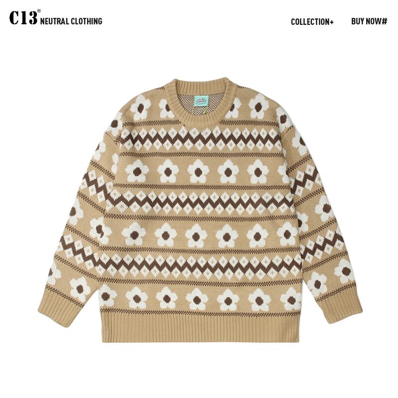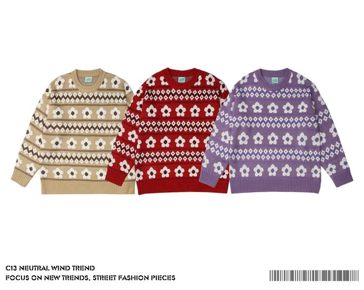 病みカッコイイ メンズファッション ストリートファッション ヒップホップ 個性的 裏原 スタンダードジャカードラウンドネックセーター レディースルーズカジュアル レトロ ストリート Oネック ✝ メンズファッション34931721868