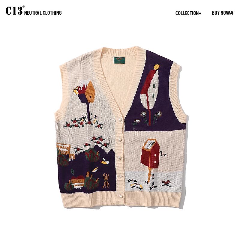 病みカッコイイ メンズファッション ストリートファッション ヒップホップ 個性的 裏原 スタンダードカラージャカードVネックセーター レディーススタイルルーズカジュアル レトロ ストリート ✝ メンズファッション18142732132
