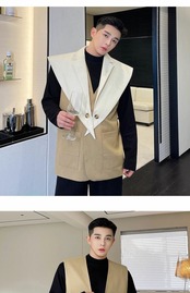 病みカッコイイ メンズファッション ストリートファッション ヒップホップ 個性的 裏原 スタンダードスタイルカラーノースリーブジャケット レッドトップス レトロ ストリート ✝ おしゃれ メンズ 42285093001