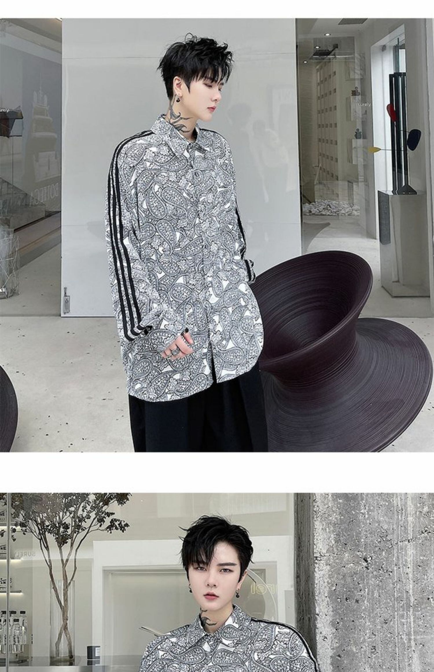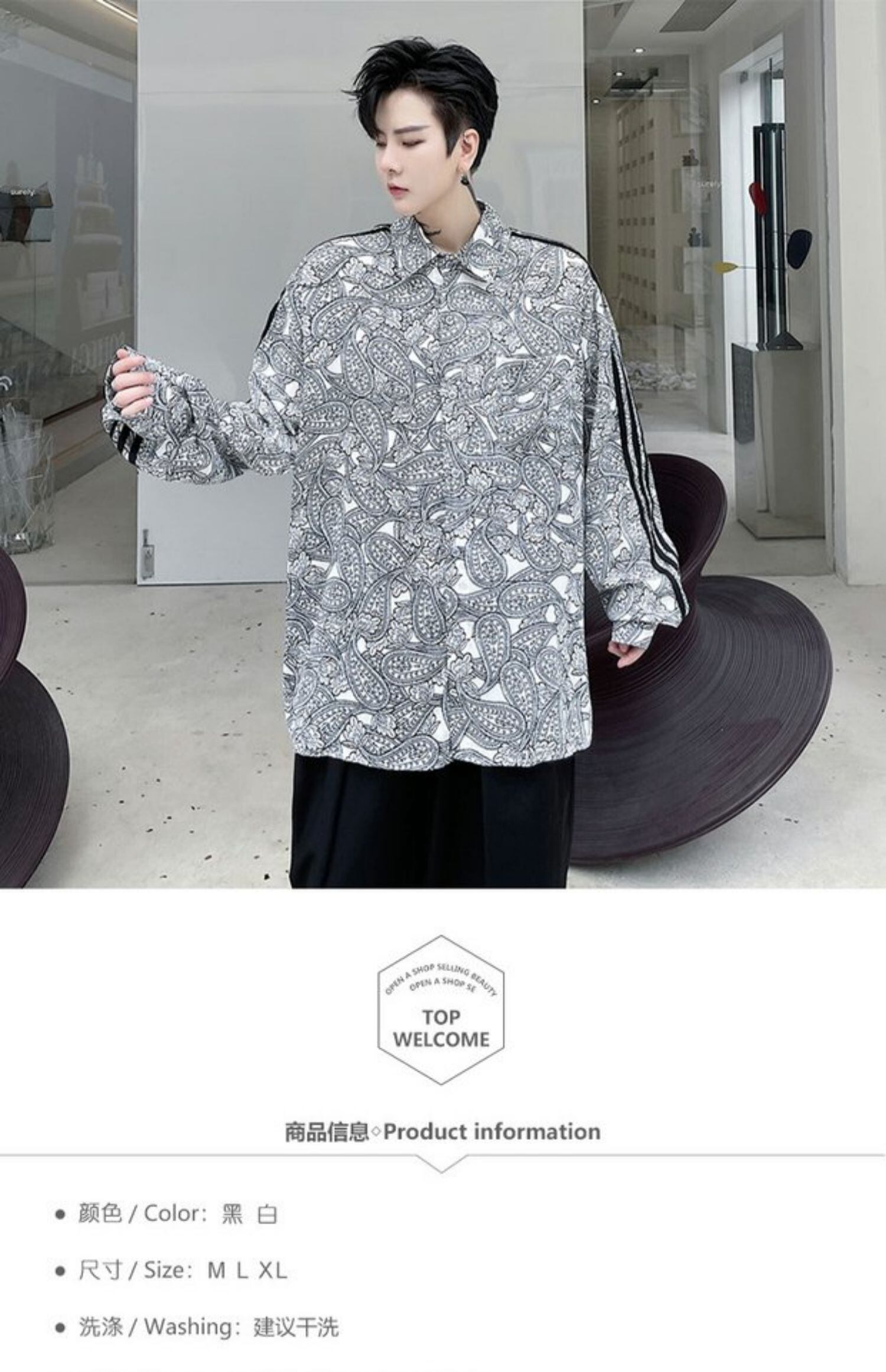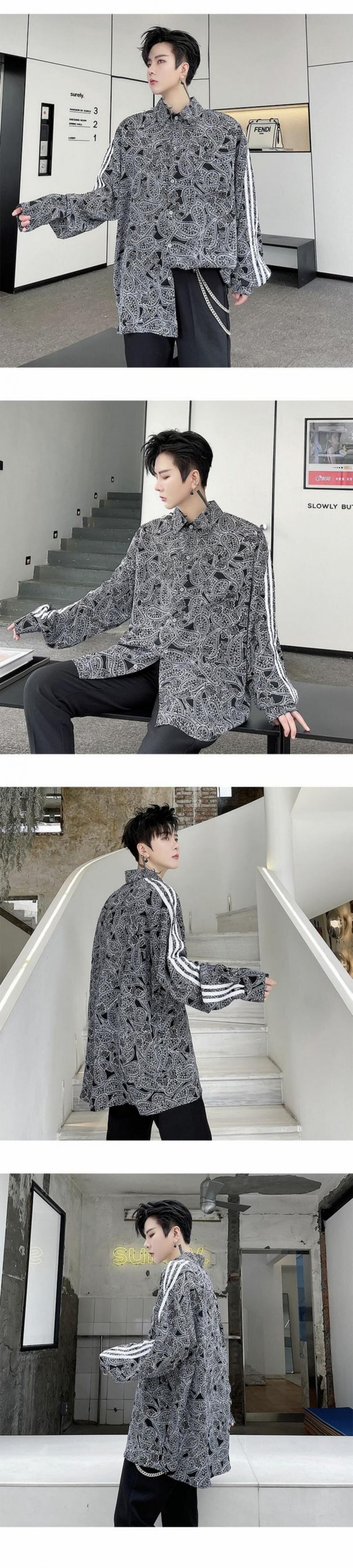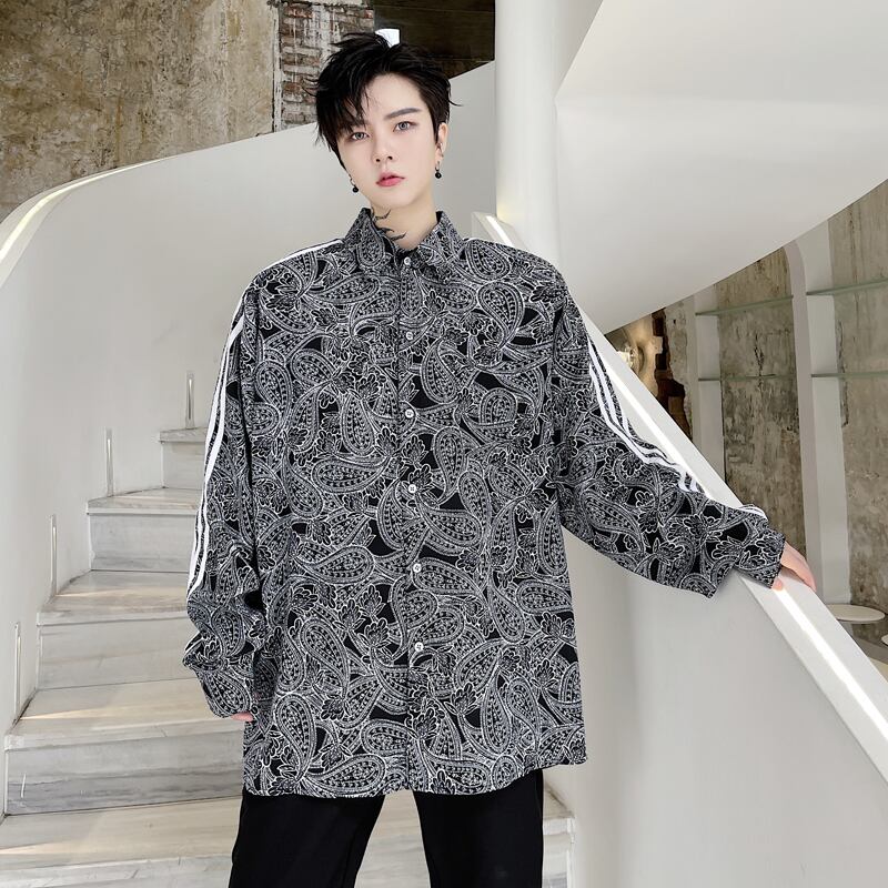 病みカッコイイ メンズファッション ストリートファッション ヒップホップ 個性的 裏原 オータムFlowerデザイン シャツ ルーズストライプ 秋物 ドレス フラワーデザイン ✝ おしゃれ メンズ 26646888938