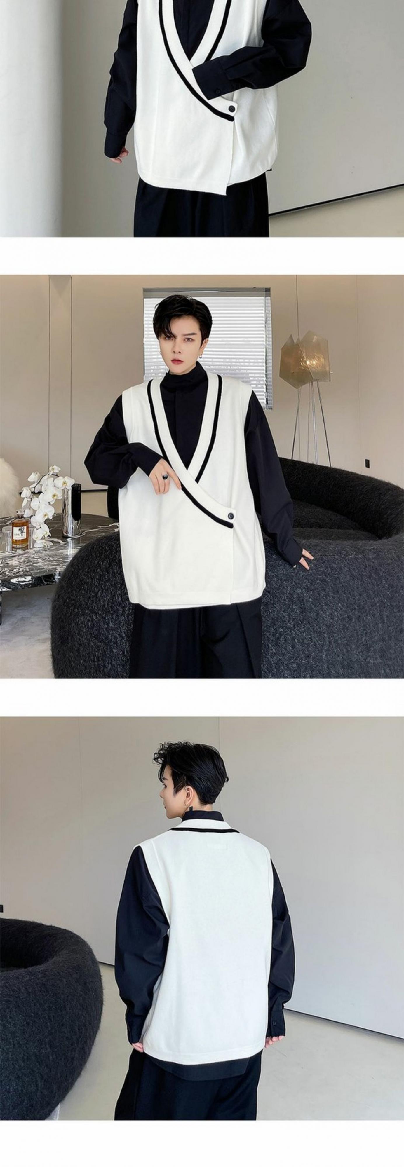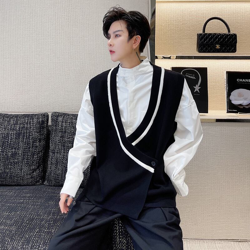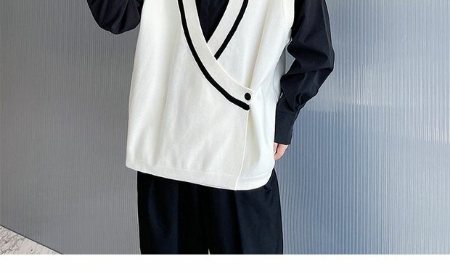 病みカッコイイ メンズファッション ストリートファッション ヒップホップ 個性的 裏原 スタンダードスタイルVネックニットノースリーブセーター レトロ ストリート ✝ おしゃれ メンズ 28372062895