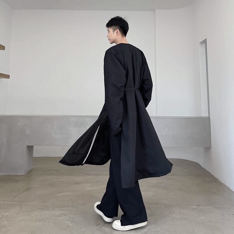病みカッコイイ メンズファッション ストリートファッション ヒップホップ 個性的 裏原 ダークブラックロングジャケット スプリングオータムスタンダードカジュアルコート レトロ 春物 秋物 ✝ おしゃれ メンズ 85396992185