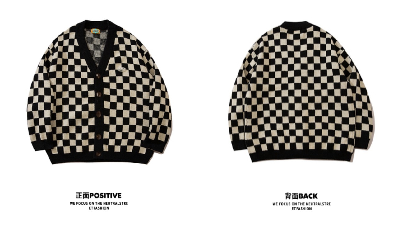 病みカッコイイ メンズファッション ストリートファッション ヒップホップ 個性的 裏原 スタンダード格子柄カーディガンセーター スタイルルーズニットジャケット レトロ ✝ メンズファッション19374928337