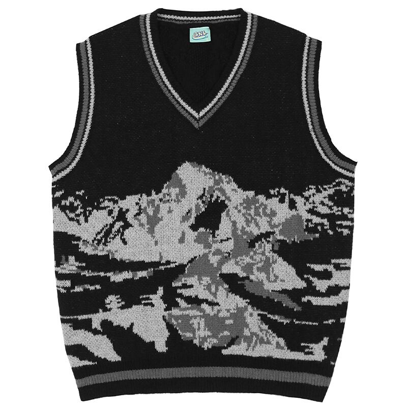 病みカッコイイ メンズファッション ストリートファッション ヒップホップ 個性的 裏原 スタンダードジャカードVネックニットレディースルーズスタイルセーター レトロ ✝ メンズファッション78428426564