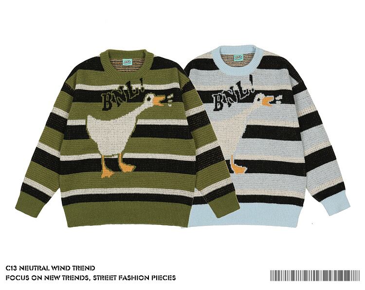 病みカッコイイ メンズファッション ストリートファッション ヒップホップ 個性的 裏原 スタンダードストライプラウンドネックセーター レディースルーズカジュアルニットジャケット レトロ Oネック ✝ メンズファッション85990719122