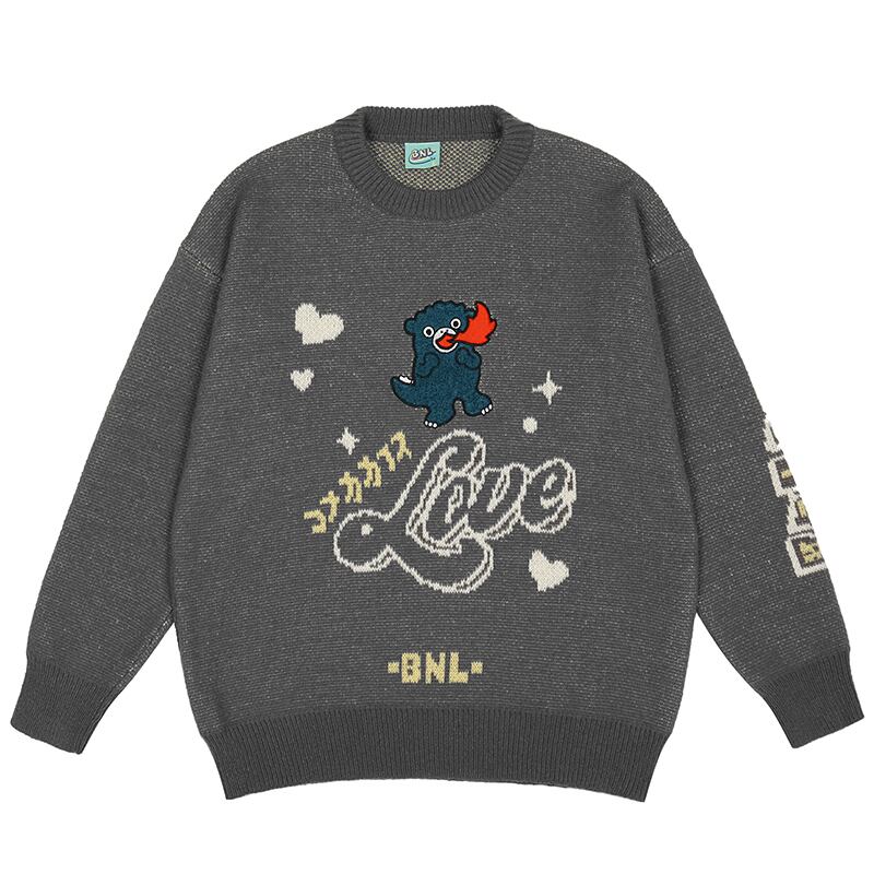 病みカッコイイ メンズファッション ストリートファッション ヒップホップ 個性的 裏原 スタンダードラウンドネックセーター レディースカジュアルニットトップス レッド レトロ 刺繍 Oネック ✝ メンズファッション62323020299