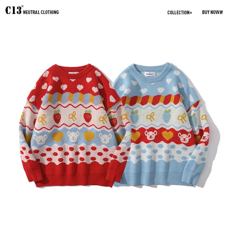 病みカッコイイ メンズファッション ストリートファッション ヒップホップ 個性的 裏原 スタンダードジャカードニットセーター レディースルーズカジュアルプルオーバー レトロ ✝ メンズファッション58238061672