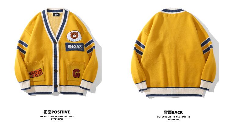 病みカッコイイ メンズファッション ストリートファッション ヒップホップ 個性的 裏原 スタンダードスタイルカラーVネックカーディガンセーター レディースルーズカジュアルニットジャケット レトロ ストリート ✝ メンズファッション43918038737