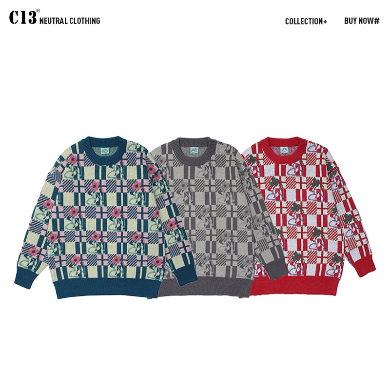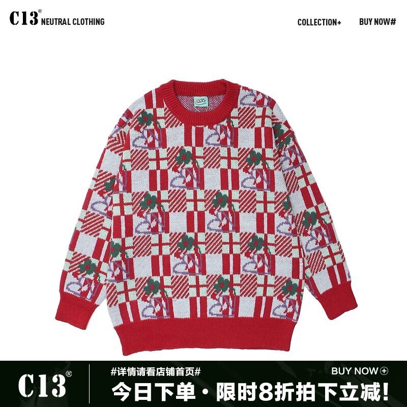 病みカッコイイ メンズファッション ストリートファッション ヒップホップ 個性的 裏原 スタンダードカラージャカードラウンドネックセーター レディースルーズカジュアル レトロ Oネック ✝ メンズファッション97437742696