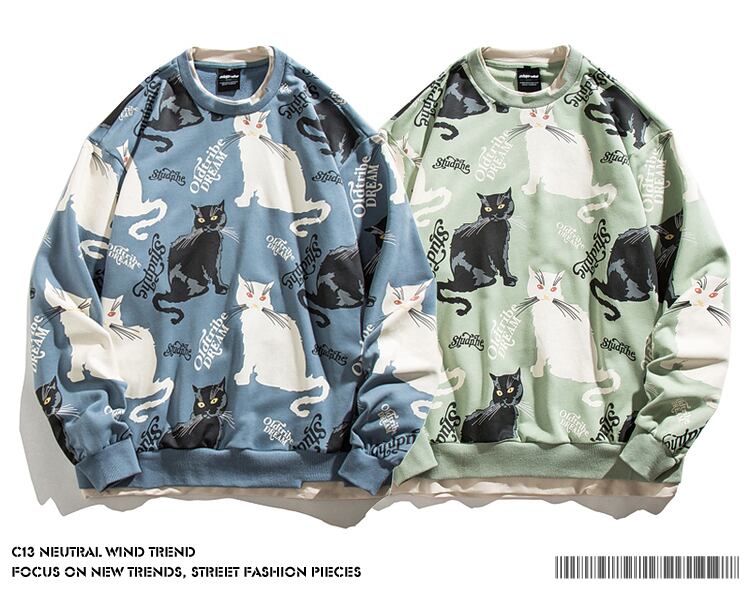 病みカッコイイ メンズファッション ストリートファッション ヒップホップ 個性的 裏原 オータムプリントラウンドネックセーター レディースルーズカジュアルトップス 秋物 Oネック ✝ メンズファッション57878466102