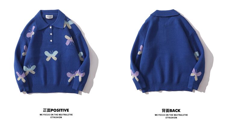病みカッコイイ メンズファッション ストリートファッション ヒップホップ 個性的 裏原 オータムスタンダードButterflyデザイン ジャカードセーター カジュアルプルオーバー レトロ ストリート 秋物 ✝ メンズファッション54186540392