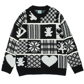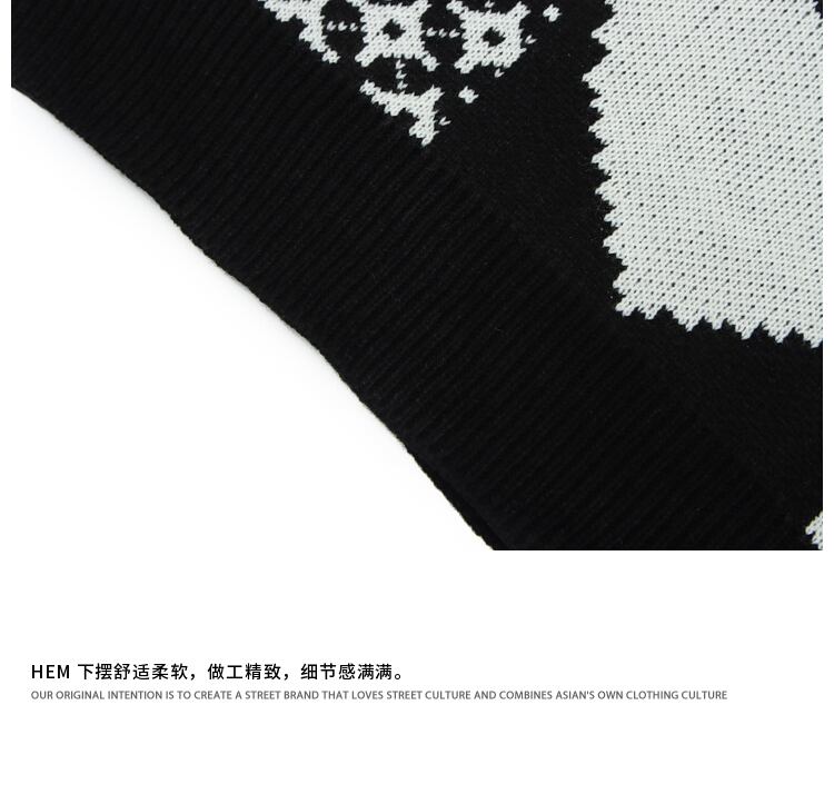 病みカッコイイ メンズファッション ストリートファッション ヒップホップ 個性的 裏原 スタンダードブラックホワイトジャカードラウンドネックセーター ジャケット レディースルーズカジュアル レトロ Oネック ✝ メンズファッション71115801093