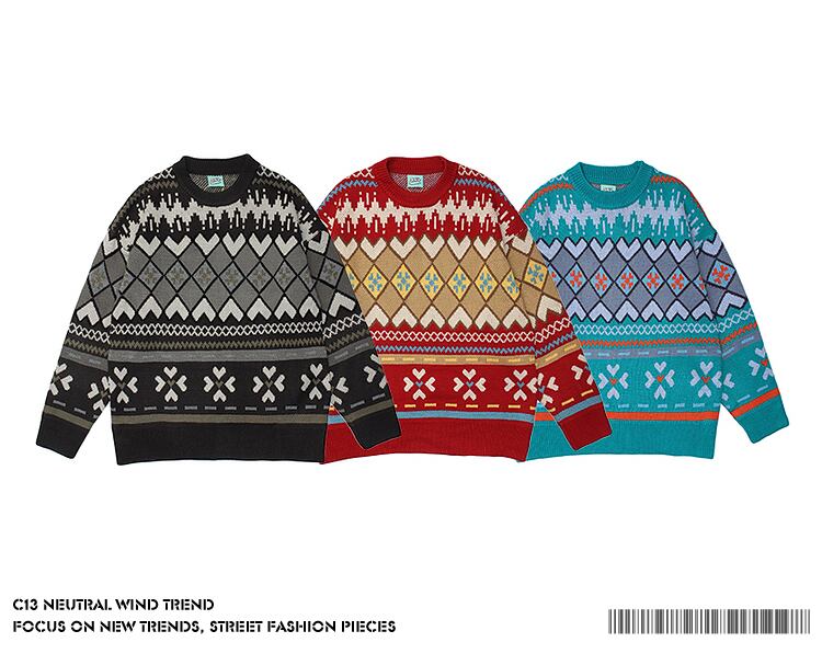 病みカッコイイ メンズファッション ストリートファッション ヒップホップ 個性的 裏原 スタンダードエスニックスタイルカラーラウンドネックセーター カジュアルプルオーバー レトロ Oネック ✝ メンズファッション95888498224