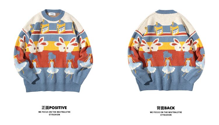 病みカッコイイ メンズファッション ストリートファッション ヒップホップ 個性的 裏原 スタンダードジャカードラウンドネックセーター レディースルーズ レトロ Oネック ✝ メンズファッション38257656142