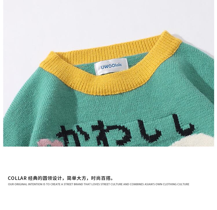 病みカッコイイ メンズファッション ストリートファッション ヒップホップ 個性的 裏原 スタンダードジャカードラウンドネックセーター レディースルーズコート レトロ ストリート Oネック ✝ メンズファッション65371854922