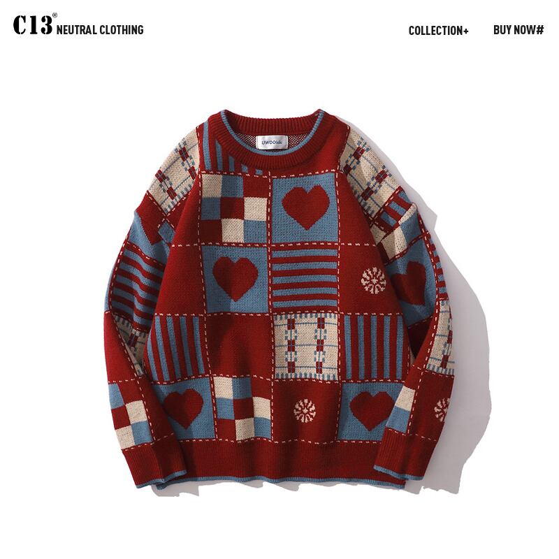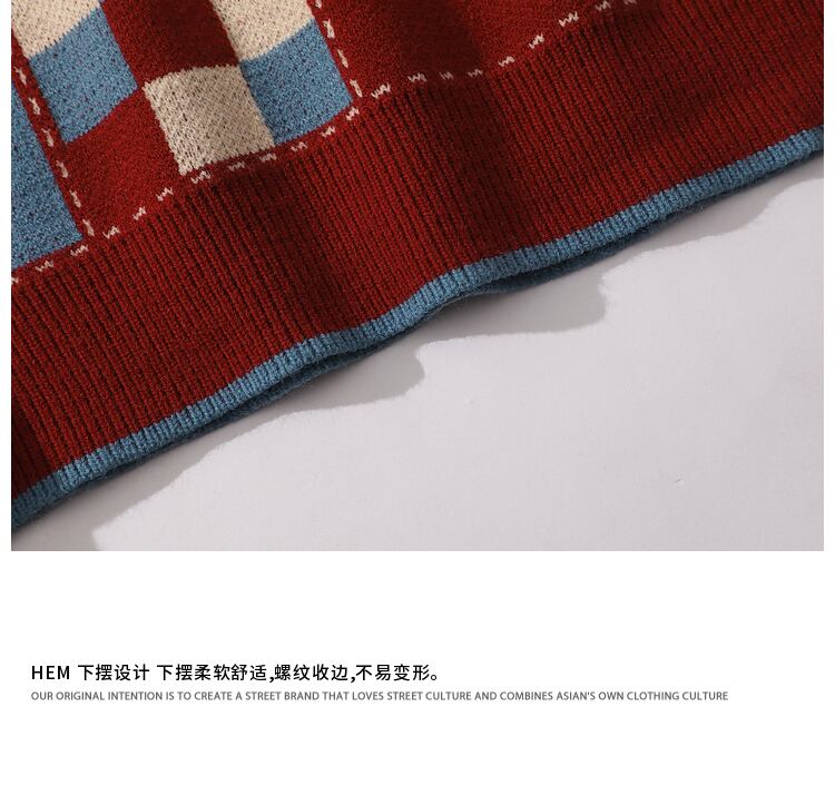 病みカッコイイ メンズファッション ストリートファッション ヒップホップ 個性的 裏原 スタンダードカラー格子柄ラウンドネックセーター レディースルーズ レトロ Oネック ✝ メンズファッション18185078018