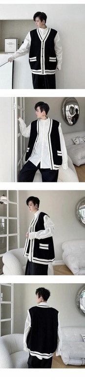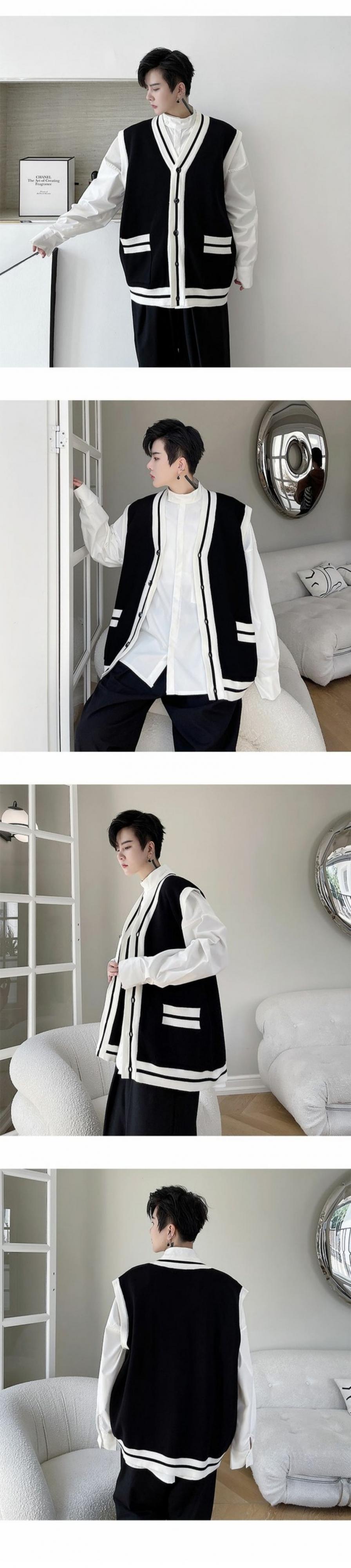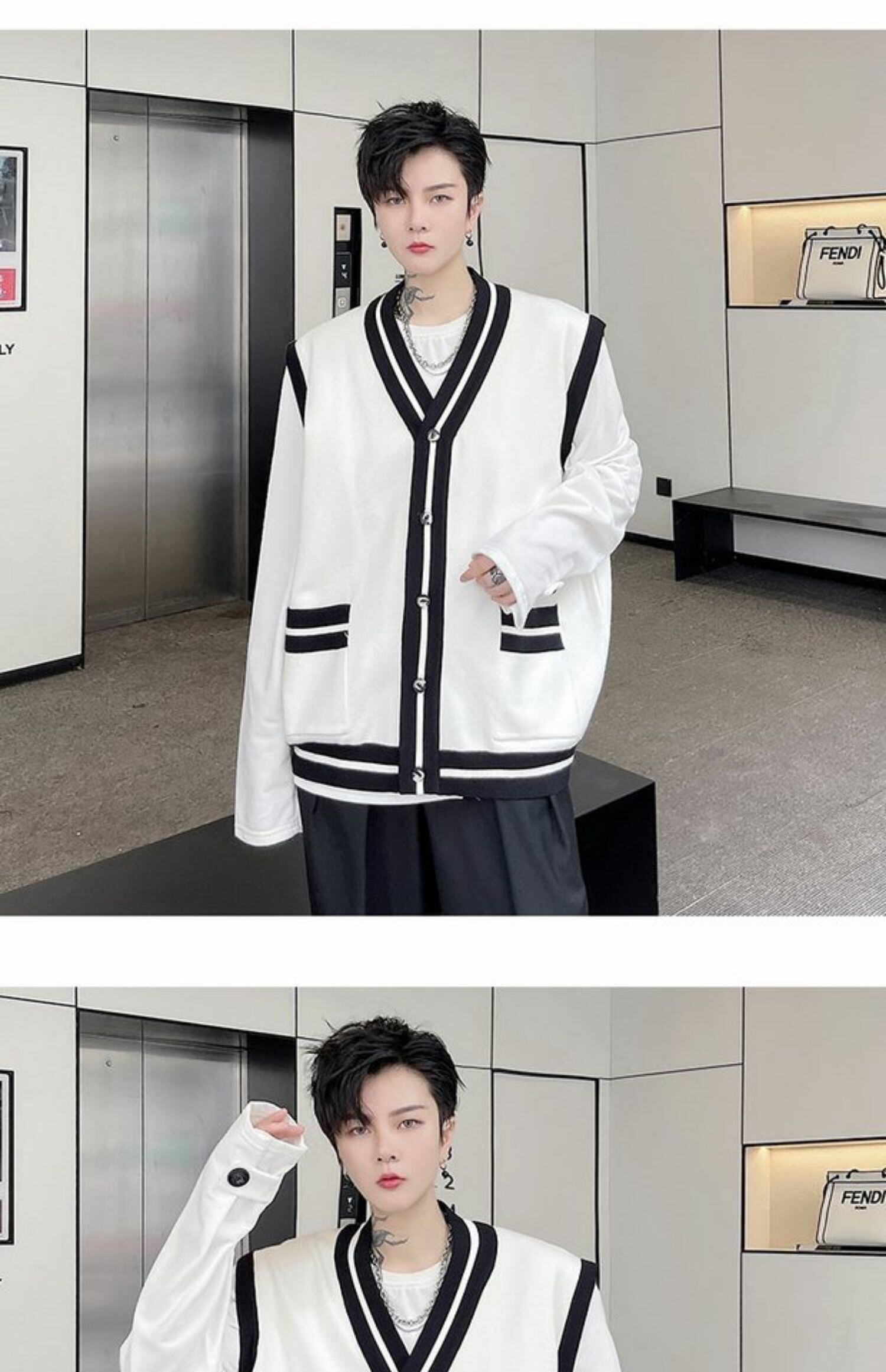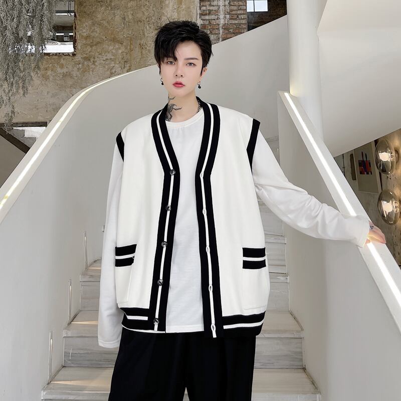 病みカッコイイ メンズファッション ストリートファッション ヒップホップ 個性的 裏原 オータムウィンターVネックカーディガンセーター レディースルーズストライプニットジャケット 秋物 冬物 ✝ おしゃれ メンズ 96870970388