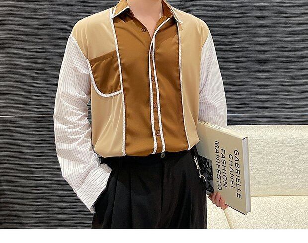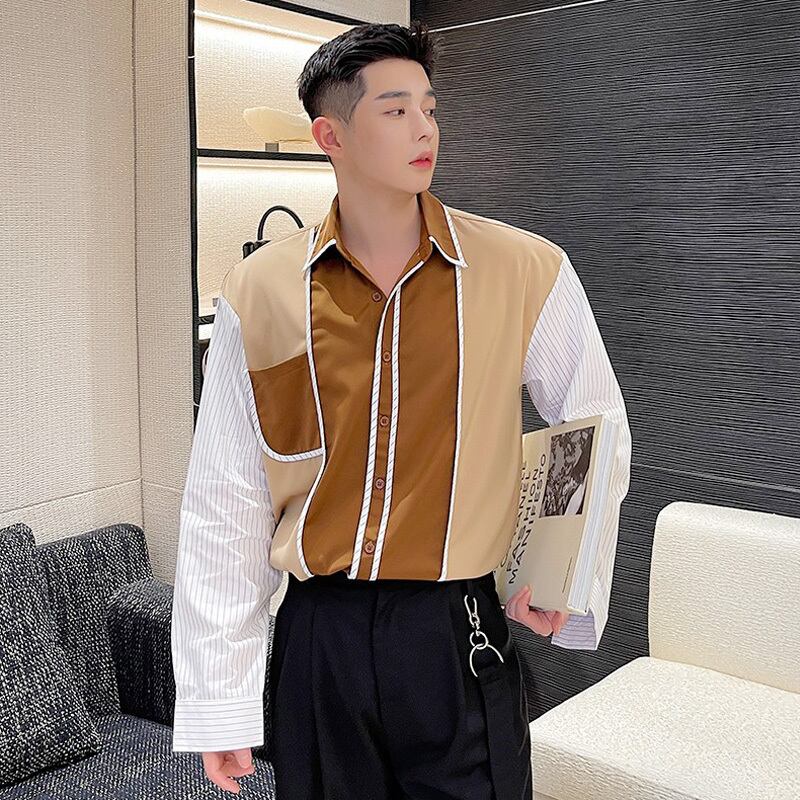 病みカッコイイ メンズファッション ストリートファッション ヒップホップ 個性的 裏原 レッドシャツ カラーストライプスプリングオータム ロング ストリート 春物 秋物 ステッチ ✝ おしゃれ メンズ 65997737552