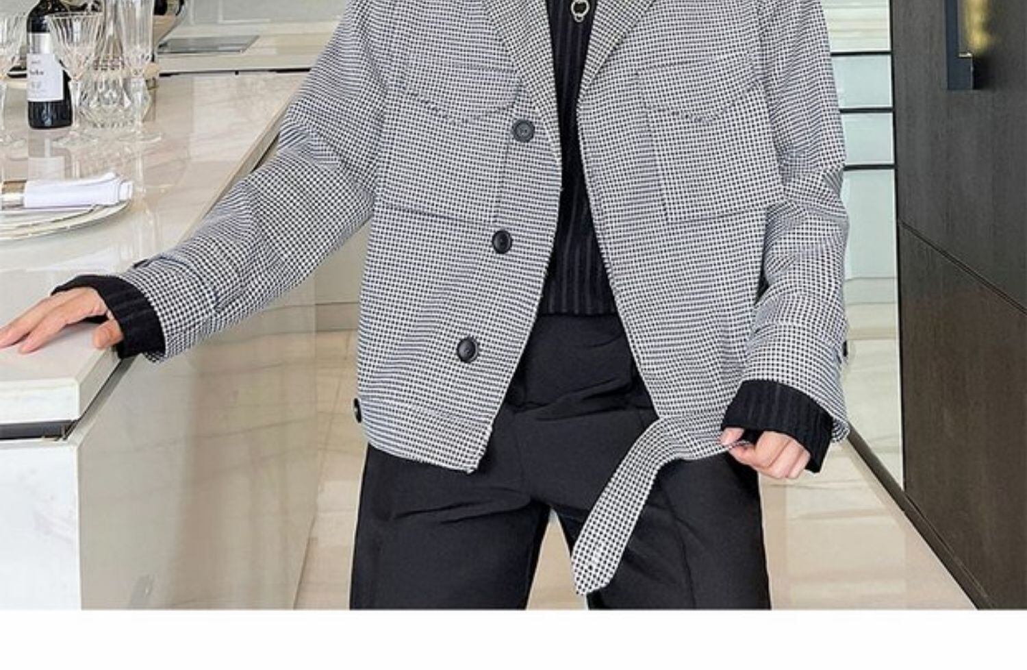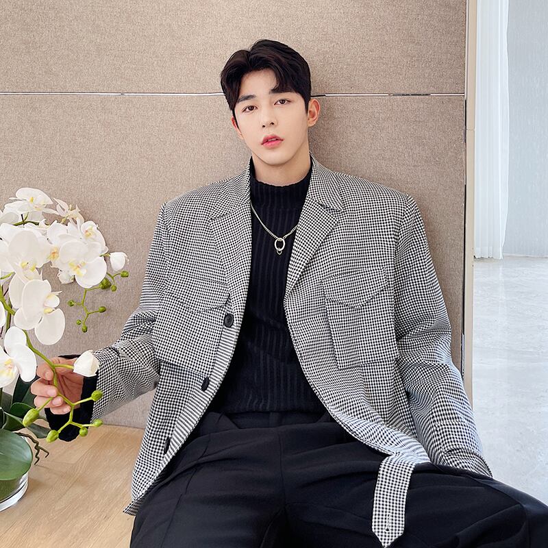 病みカッコイイ メンズファッション ストリートファッション ヒップホップ 個性的 裏原 オータムスタンダードスタイルブラックホワイト格子柄ジャケット レトロ かわいい 秋物 ✝ おしゃれ メンズ 55938953202