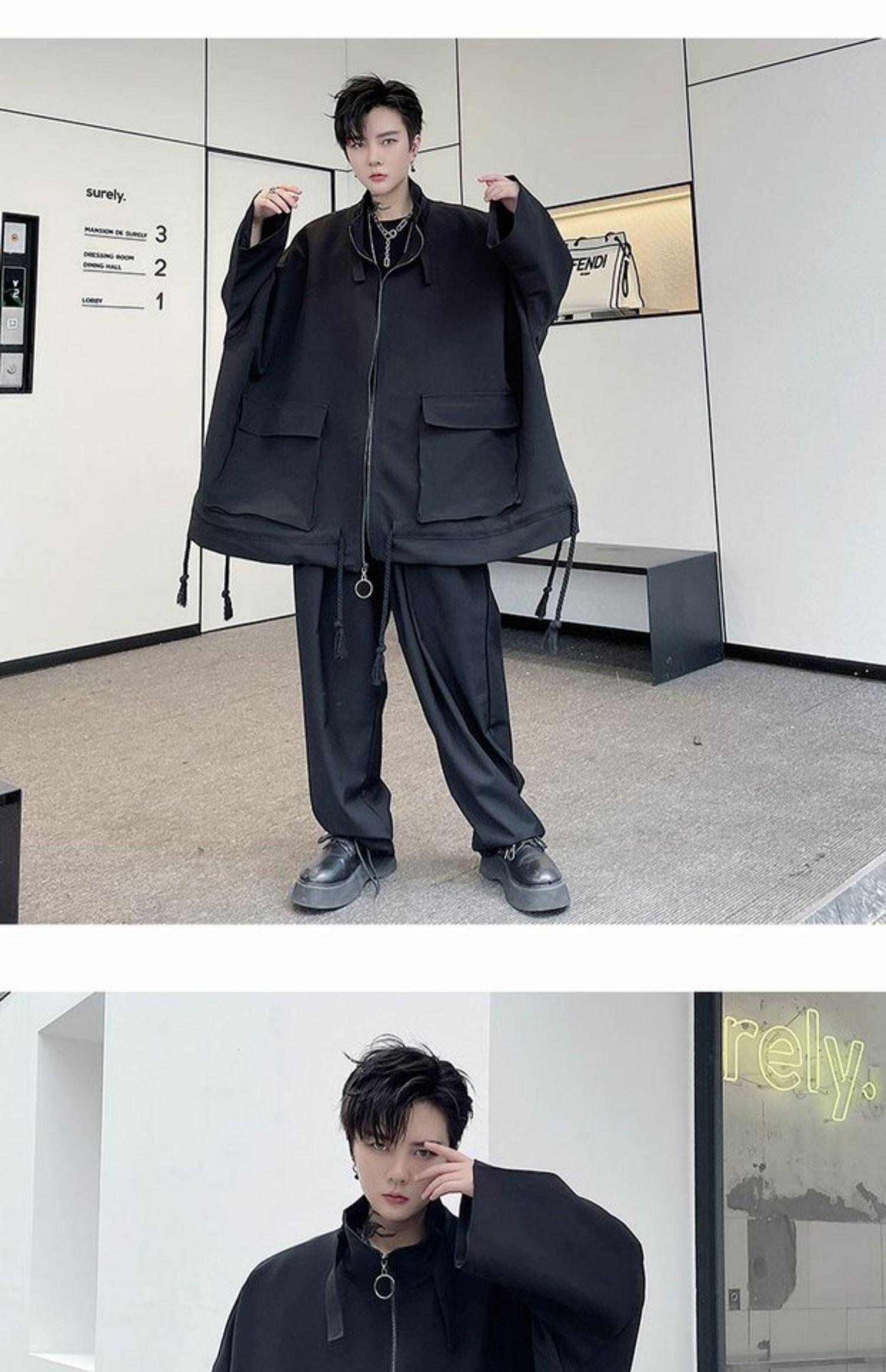 病みカッコイイ メンズファッション ストリートファッション ヒップホップ 個性的 裏原 ダークシャツ ジャケット スプリングオータムスタンドカラーカラー ストリート かわいい 春物 秋物 ✝ おしゃれ メンズ 11681986063