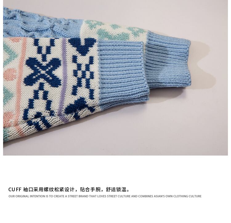 病みカッコイイ メンズファッション ストリートファッション ヒップホップ 個性的 裏原 スタンダードエスニックスタイルカラーラウンドネックセーター ジャケット レトロ Oネック ✝ メンズファッション45687289020