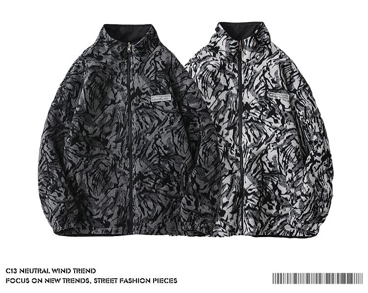 病みカッコイイ メンズファッション ストリートファッション ヒップホップ 個性的 裏原 スタンダードレオパードプリント柄スタンドカラーカラージャケット レディースルーズ レトロ ストリート ヨーロピアン ✝ メンズファッション69182509294