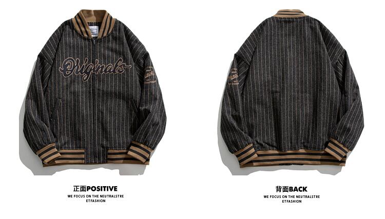 病みカッコイイ メンズファッション ストリートファッション ヒップホップ 個性的 裏原 自然派スタンダード刺繍ストライプジャケット レディースルーズ レトロ ストリート ✝ メンズファッション77237596182