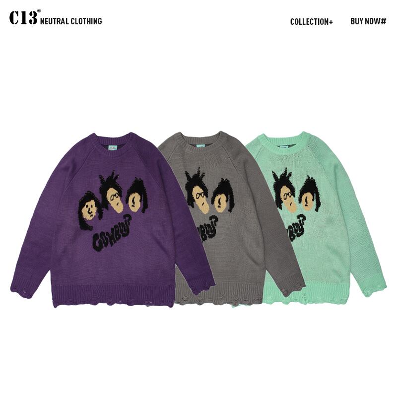 病みカッコイイ メンズファッション ストリートファッション ヒップホップ 個性的 裏原 スタンダードジャカードラウンドネックセーター レディースルーズニットコート レトロ ストリート Oネック ✝ メンズファッション47983925588