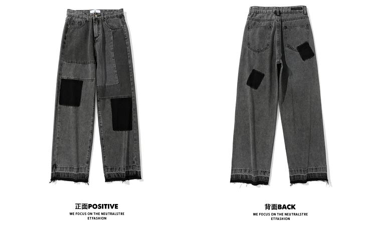 病みカッコイイ メンズファッション ストリートファッション ヒップホップ 個性的 裏原 ジーンズ レディースルーズハイウェストウェストパンツ ストリート ステッチ ✝ メンズファッション21868033319
