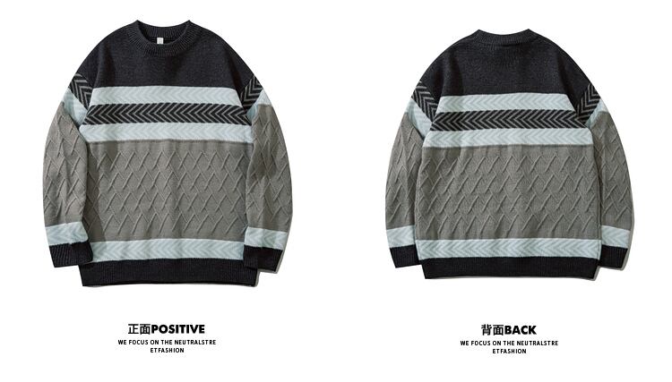 病みカッコイイ メンズファッション ストリートファッション ヒップホップ 個性的 裏原 スタンダードカラーストライプラウンドネックセーター レディースルーズカジュアルニットジャケット レトロ Oネック ✝ メンズファッション4728171407