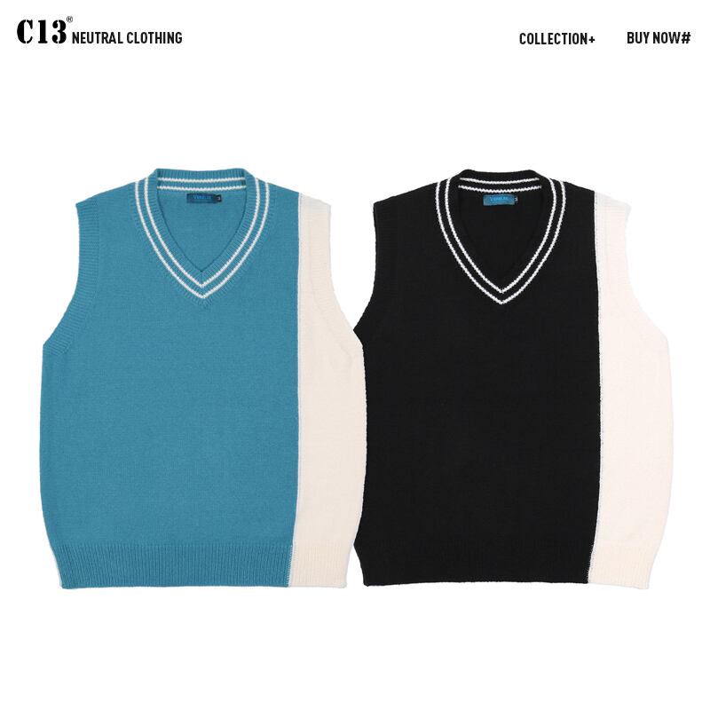 病みカッコイイ メンズファッション ストリートファッション ヒップホップ 個性的 裏原 スタンダードカラーVネックセーター レディースルーズノースリーブ レトロ ステッチ ✝ メンズファッション86014413916