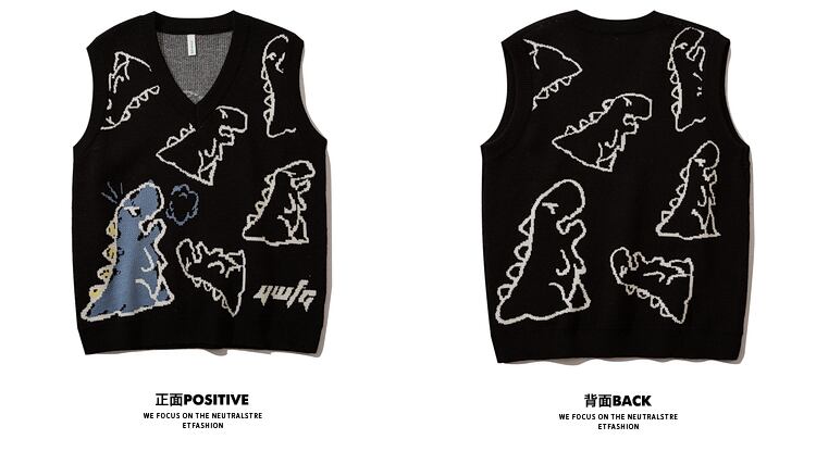 病みカッコイイ メンズファッション ストリートファッション ヒップホップ 個性的 裏原 スタンダードジャカードVネックセーター ジャケット ルーズスタイル レトロ ストリート ✝ メンズファッション74379809356