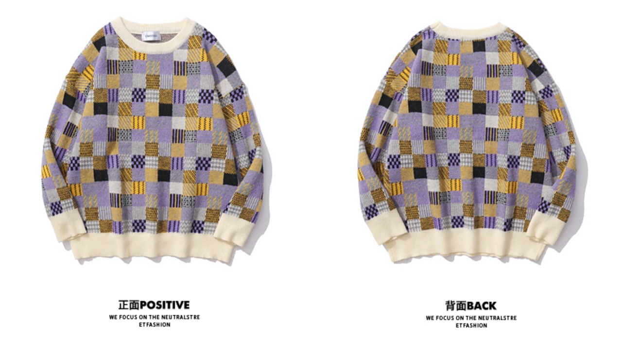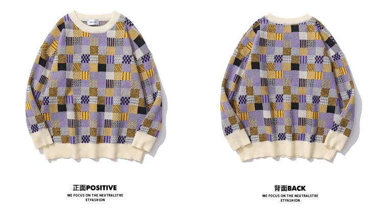 病みカッコイイ メンズファッション ストリートファッション ヒップホップ 個性的 裏原 スタンダード格子柄カラーラウンドネックセーター レディースカジュアル レトロ Oネック ✝ メンズファッション37468447913