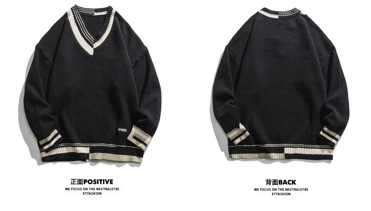 病みカッコイイ メンズファッション ストリートファッション ヒップホップ 個性的 裏原 スタンダードカラーVネックセーター レディースルーズスタイルカジュアル レトロ ストリート ✝ メンズファッション94360935783