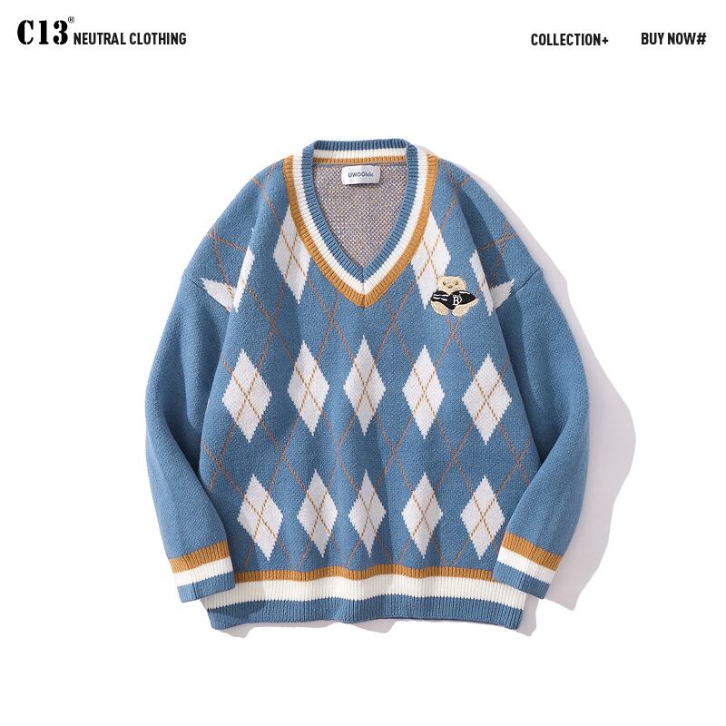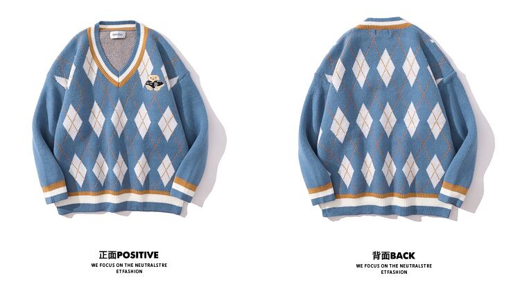 病みカッコイイ メンズファッション ストリートファッション ヒップホップ 個性的 裏原 スタンダードカラーVネックセーター ジャケット レディーススタイルルーズカジュアル レトロ ✝ メンズファッション43735741205