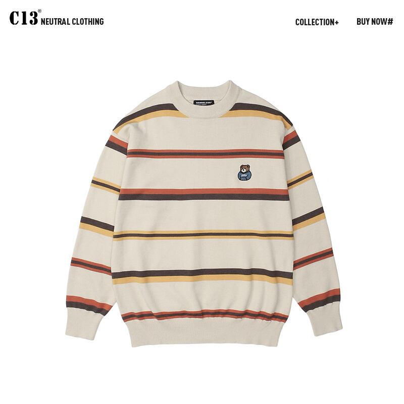 病みカッコイイ メンズファッション ストリートファッション ヒップホップ 個性的 裏原 スタンダードストライプカラーニットセーター ルーズカジュアルプルオーバー トップス レトロ ✝ メンズファッション79260232440