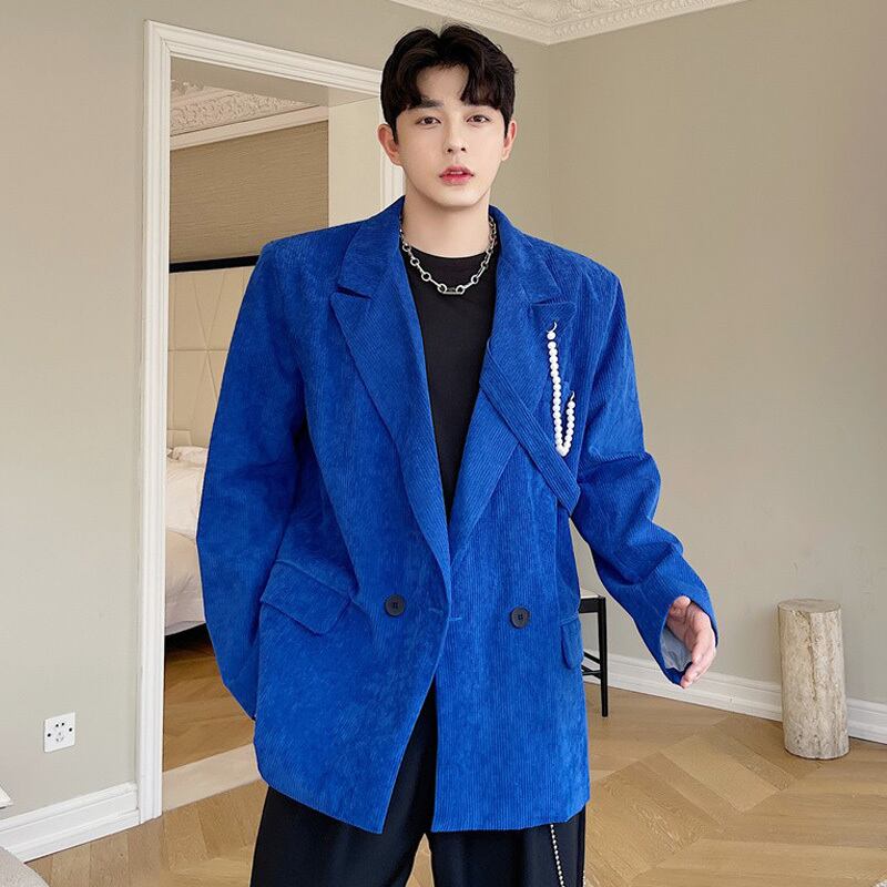 病みカッコイイ メンズファッション ストリートファッション ヒップホップ 個性的 裏原 ブルージャケット スプリングオータムスタンダードコーデュロイ レトロ ストリート 春物 秋物 サファイア サファイヤ 碧玉 青玉 ✝ おしゃれ メンズ 55104622491