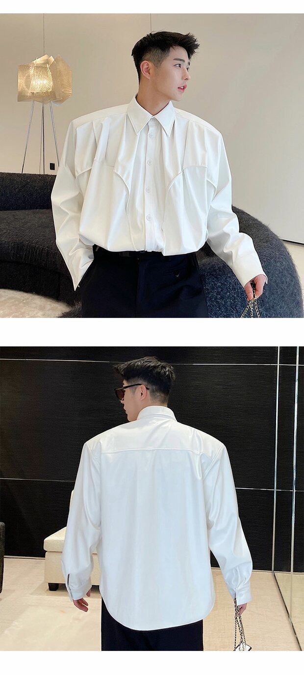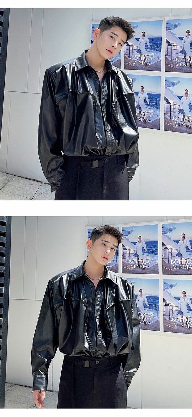 病みカッコイイ メンズファッション ストリートファッション ヒップホップ 個性的 裏原 オータムレザーシャツ ルーズジャケット ロング ストリート 秋物 ✝ おしゃれ メンズ 90720297357