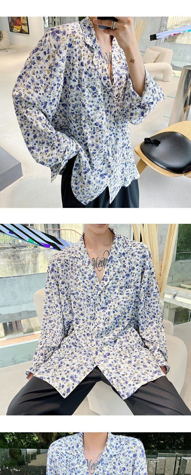 病みカッコイイ メンズファッション ストリートファッション ヒップホップ 個性的 裏原 オータムフローラルシャツ スタンダードスタイルレッドカラー ロング レトロ ストリート 秋物 花柄 ✝ おしゃれ メンズ 32883617724