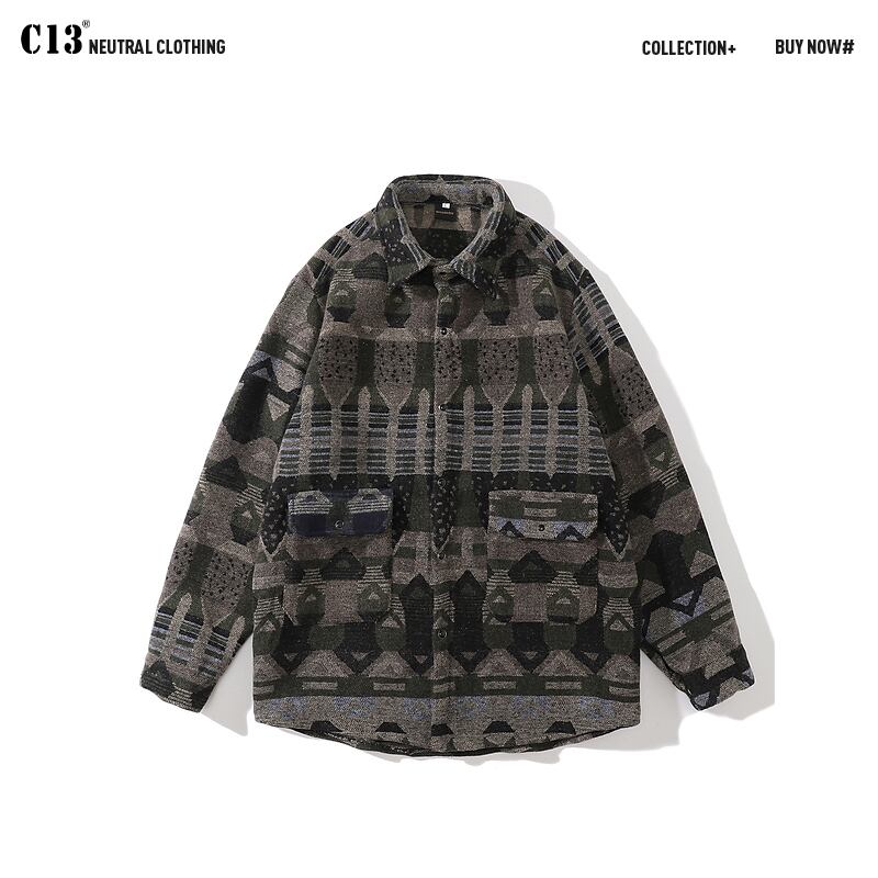 病みカッコイイ メンズファッション ストリートファッション ヒップホップ 個性的 裏原 スタンダードカラーシャツ レディースオータムウィンタールーズカジュアルFlowerデザイン ジャケット ロング レトロ 秋物 冬物 フラワーデザイン ✝ メンズファッション95323258056