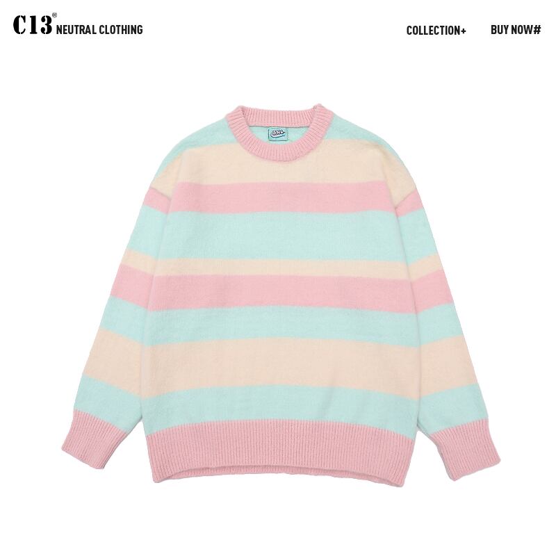病みカッコイイ メンズファッション ストリートファッション ヒップホップ 個性的 裏原 オータムスタイルストライプラウンドネックセーター レディースルーズカジュアル かわいい 秋物 Oネック ✝ メンズファッション25004450935