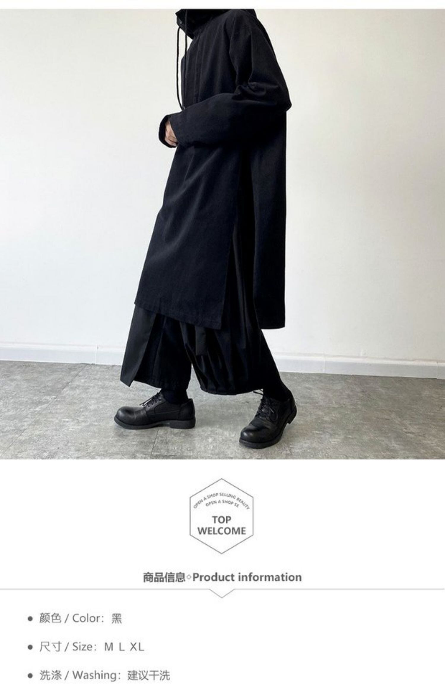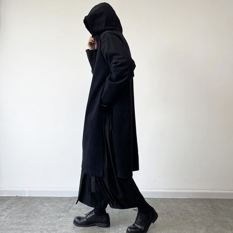 病みカッコイイ メンズファッション ストリートファッション ヒップホップ 個性的 裏原 オータムウィンターダークスタイルフードルーズコート ロング かわいい 秋物 冬物 ✝ おしゃれ メンズ 25156813305